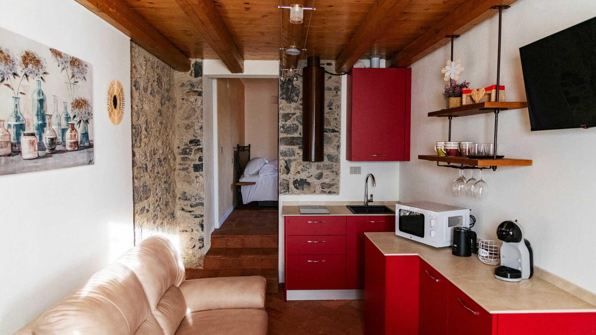 Immerso in calde tonalità rosse, questo appartamento moderno invita a un soggiorno vivace e confortevole, capace di trasmettere energia e serenità allo stesso tempo. La camera principale, curata nei dettagli e ariosa, offre un rifugio rilassante, mentre il bagno dal design contemporaneo coniuga funzionalità ed estetica. L’angolo cottura, pratico e ben organizzato, permette di gestire ogni pasto con facilità, rendendo la permanenza davvero senza pensieri.